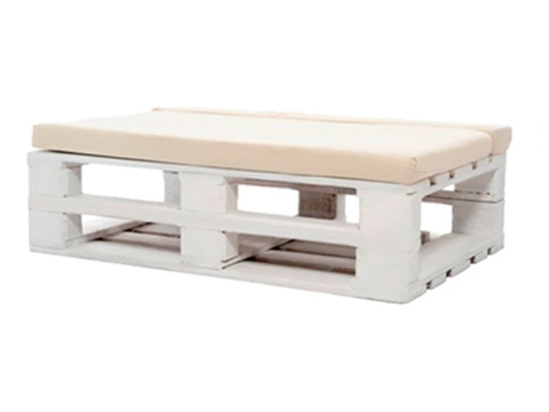 Аренда банкетки из паллет белой с белой подушкой на мероприятие