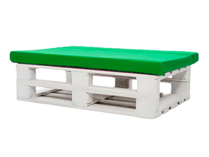 Аренда банкетки из паллет белой с зеленой подушкой на мероприятие