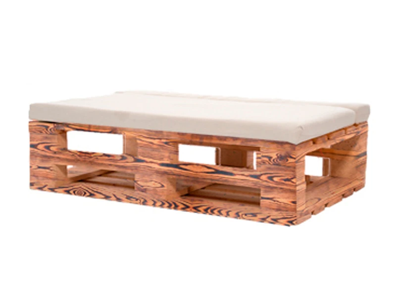 Аренда банкетки из паллет обожжённой с белой подушкой на мероприятие