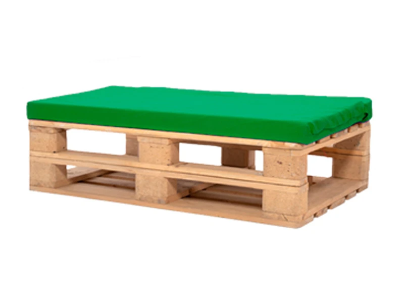 Аренда банкетки из поддонов деревянной с зеленой подушкой на мероприятие