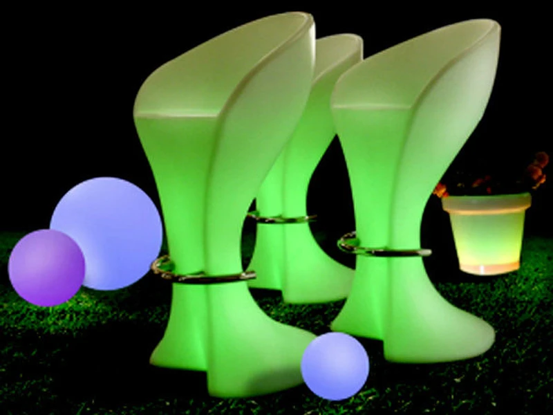 Этот современный светодиодный барный стул сочетает в себе эстетичный дизайн и максимальную практичность. Благодаря эргономичной форме и надежной металлической подставке для ног, он обеспечивает комфортную посадку гостей в течение всего вечера. Мебель оснащена мощным RGB модулем, который управляется дистанционным пультом: вы можете выбрать один из 16 оттенков или настроить динамический режим смены цветов. Прочный полимерный корпус не боится влаги и механических повреждений, что позволяет использовать стулья как в закрытых залах, так и на открытых террасах. Автономная работа от встроенного аккумулятора избавляет от лишних проводов, создавая чистое и стильное пространство. Для транспортировки предусмотрены защитные чехлы, гарантирующие безупречный вид оборудования при доставке.