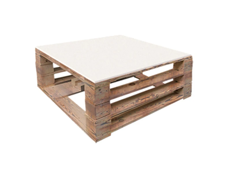 Аренда паллетного журнального обожжённого стола с белой столешницей на мероприятие