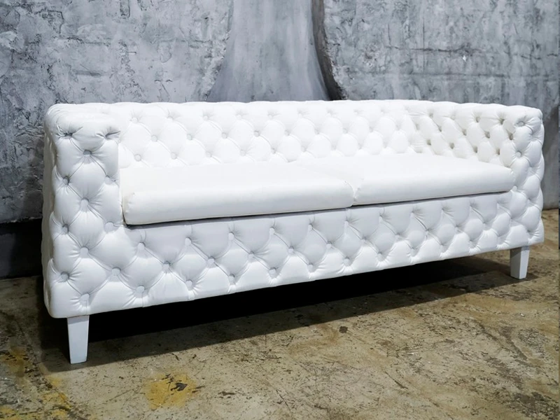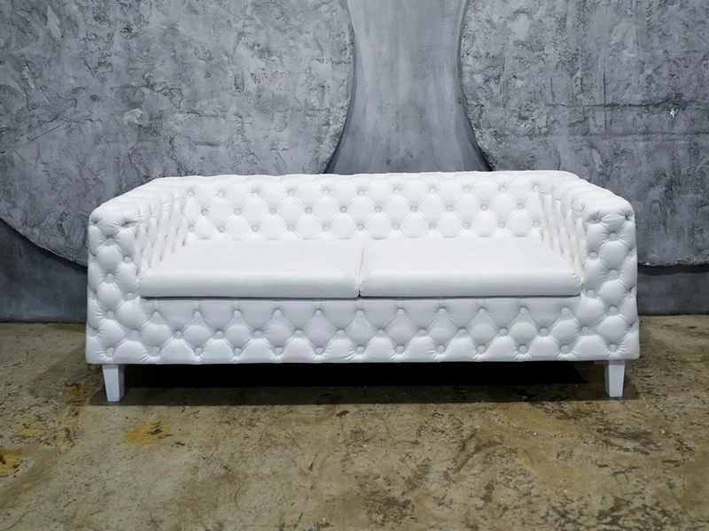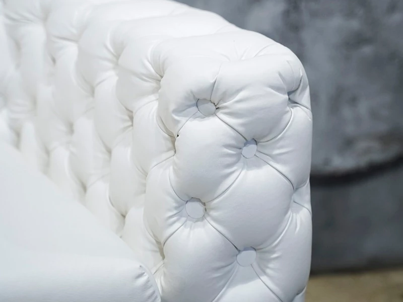 Двухместный диван Malavi — это воплощение изысканности и безупречного стиля для ценителей эстетичного дизайна. Модель выполнена в благородном белом цвете, а обивка из высококачественной экокожи придает ей премиальный вид. Изюминкой дизайна является декоративная стежка с деревянными пуговицами, расположенными в строгом шахматном порядке. Подушки сиденья и спинки сочетают в себе мягкость и лаконичность форм благодаря бесшовной технологии натяжки материала. Завершают элегантный образ устойчивые деревянные ножки, гармонично подобранные в тон основному цвету мебели.