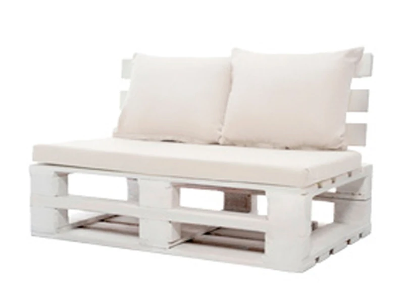 Аренда белого двухместного дивана из паллет с белой подушкой на мероприятие
