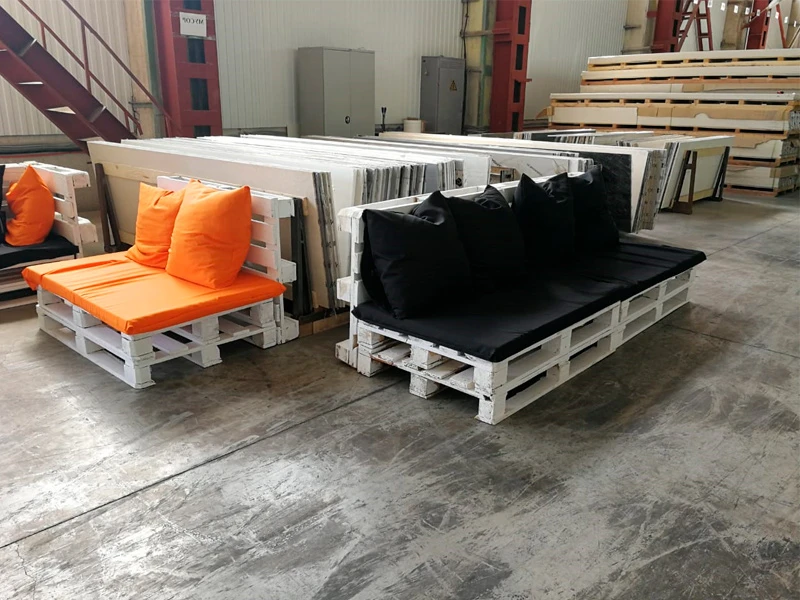 Аренда дивана из паллет двухместного белого с черной подушкой на мероприятие