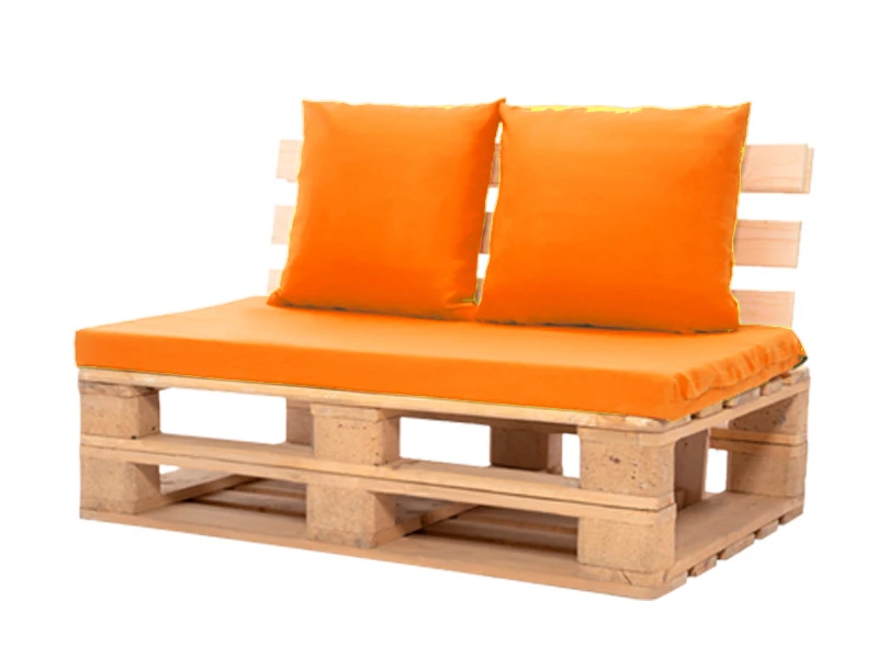 Аренда дивана из паллет двухместного с оранжевой подушкой на мероприятие