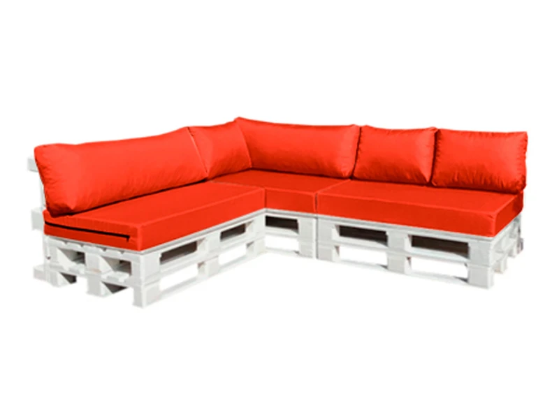 Аренда дивана из паллет углового белого с красной подушкой на мероприятие