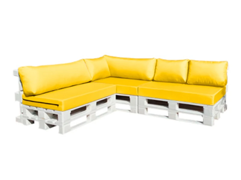 Аренда дивана из паллет углового белого с желтой подушкой на мероприятие