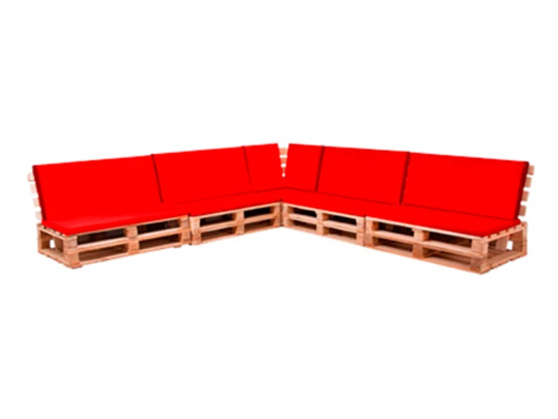 Аренда дивана паллетного модульного деревянного с красной подушкой на мероприятие