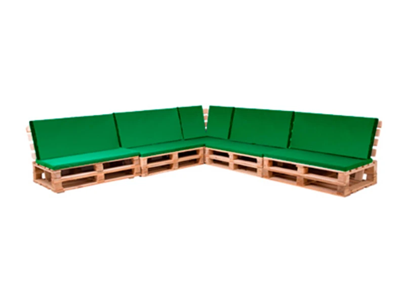 Аренда дивана паллетного модульного деревянного с зеленой подушкой на мероприятие