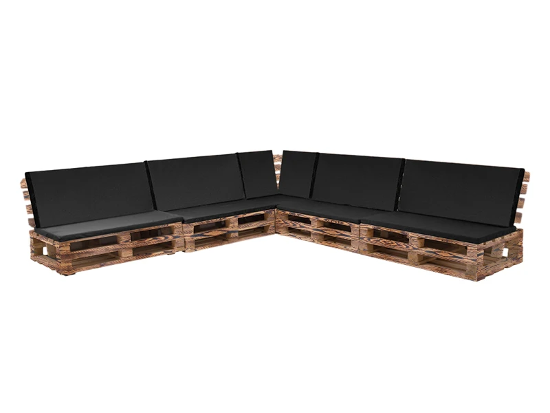 Аренда дивана паллетного модульного обожжённого с черной подушкой на мероприятие