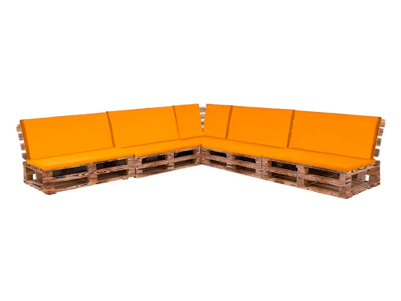 Аренда дивана паллетного модульного обожжённого с оранжевой подушкой на мероприятие
