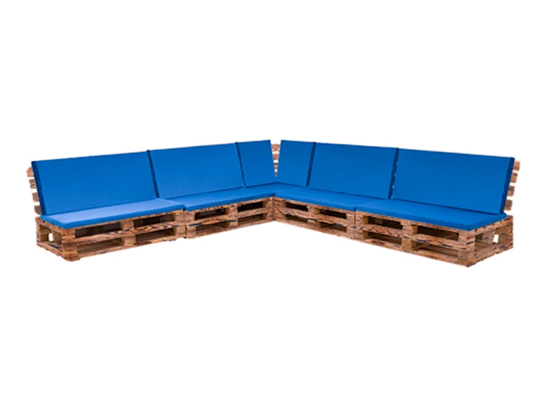 Аренда дивана паллетного модульного обожжённого с синей подушкой на мероприятие