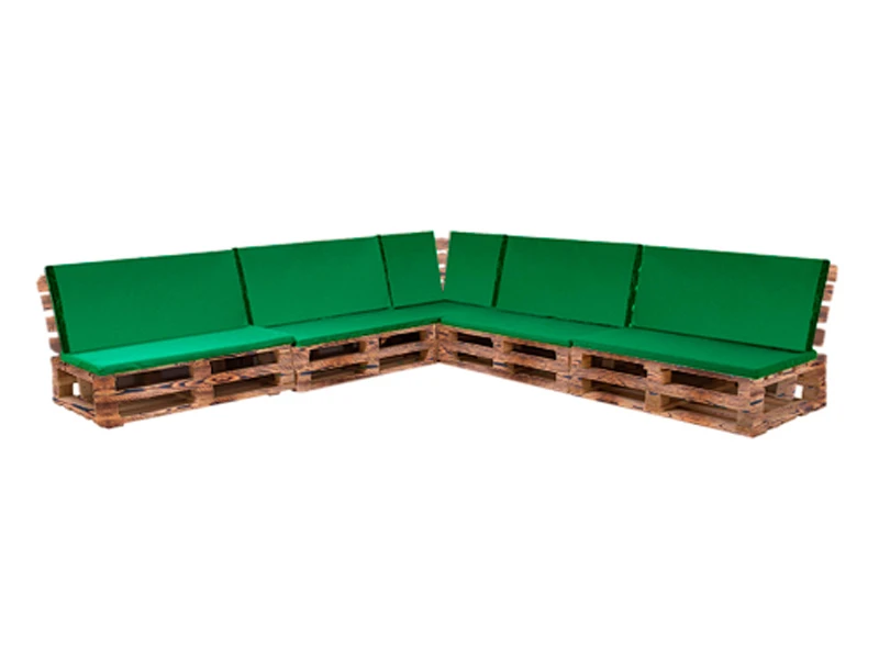 Аренда паллетного модульного обожжённого дивана с зеленой подушкой на мероприятие
