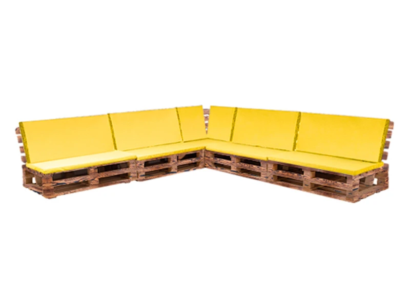 Аренда дивана паллетного модульного обожжённого с желтой подушкой на мероприятие