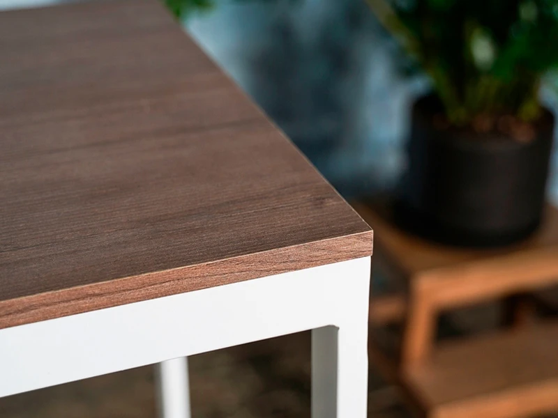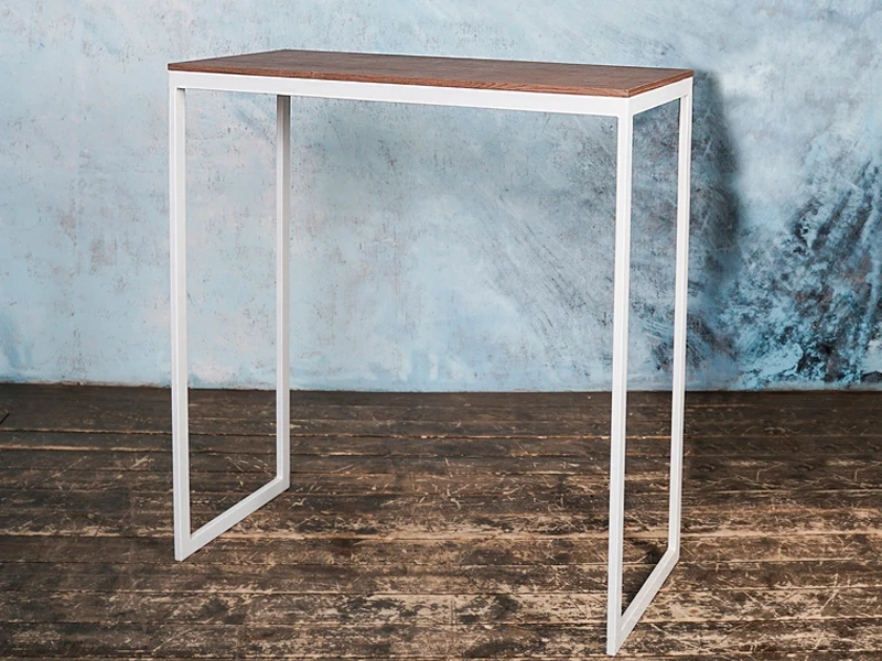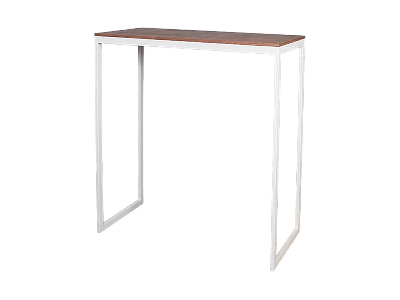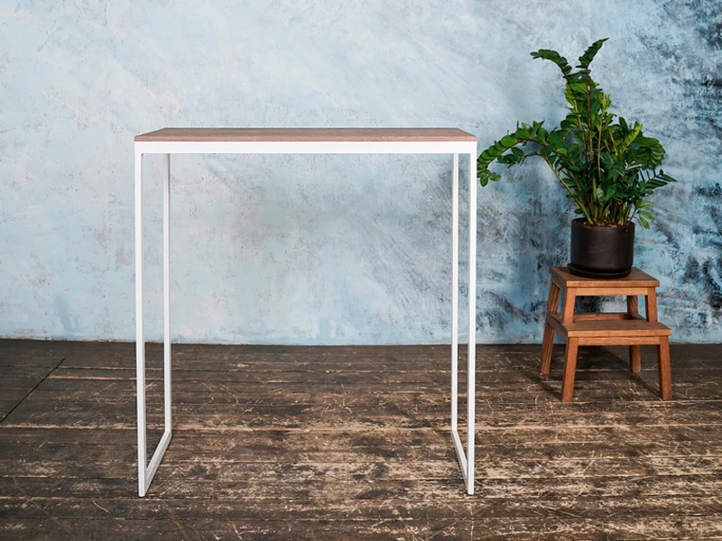 Эта элегантная консоль на металлическом основании станет идеальным решением для презентации премиальных брендов или организации фуршетной зоны. Конструкция сочетает в себе визуальную легкость и высокую надежность: тонкие белые ножки из прочного металла обеспечивают устойчивость и комфортную высоту для использования. Прямоугольная столешница из натурального массива дерева отличается долговечностью и эстетичным видом, позволяя эффектно разместить закуски, декор или рекламную продукцию без потери полезной площади.