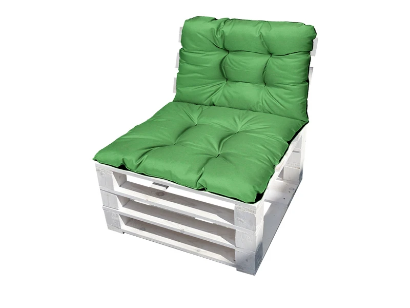 Аренда кресла из поддонов Классик белого с зеленой подушкой на мероприятие