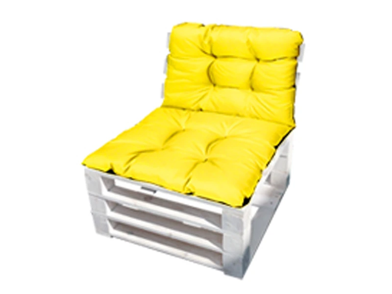 Аренда кресла из поддонов Классик белого с желтой подушкой на мероприятие