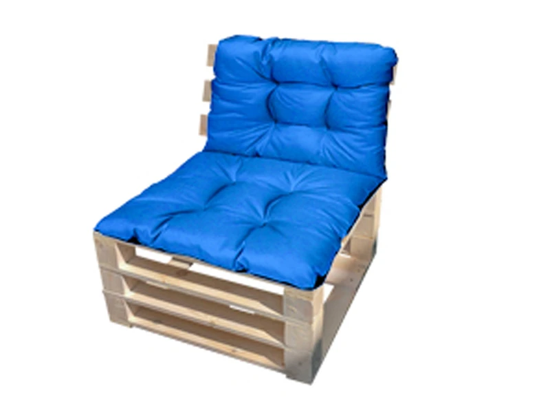 Аренда кресла из поддонов Классик деревянного с синей подушкой на мероприятие