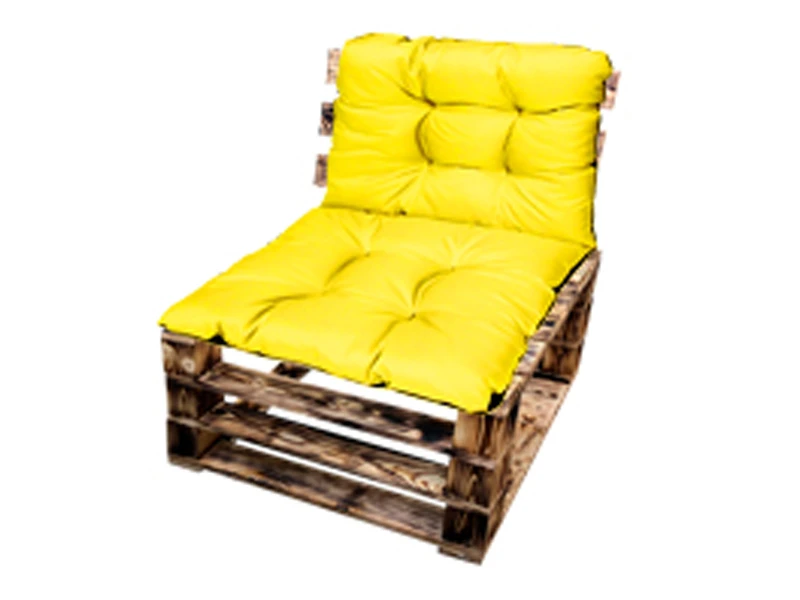 Аренда кресла из поддонов обожжённого с желтой подушкой на мероприятие