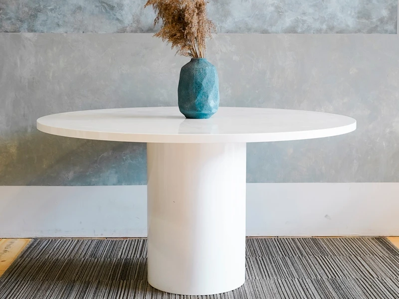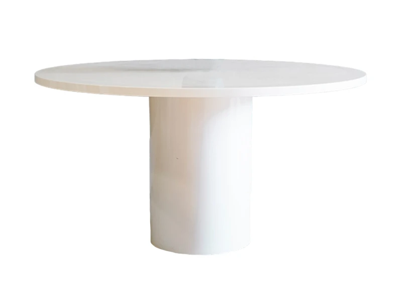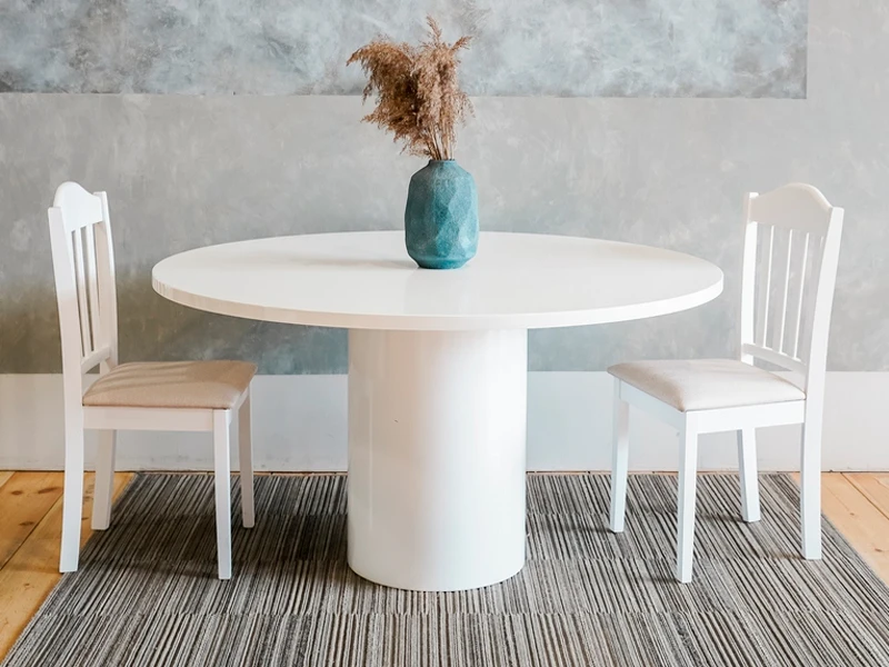 Этот элегантный стол сочетает в себе современную эстетику и высокую функциональность. Просторная столешница диаметром 1400 мм опирается на надежное цилиндрическое основание, обеспечивающее отличную устойчивость конструкции. Поверхность выполнена из качественного МДФ и покрыта специализированным лаком, который не только создает благородный глянец, но и служит надежной защитой от влаги и механических повреждений. Белоснежное исполнение делает этот предмет мебели универсальным выбором для оформления фуршетов, свадеб и деловых приемов, позволяя гармонично разместить цветочные композиции, сервировку или элементы декора.