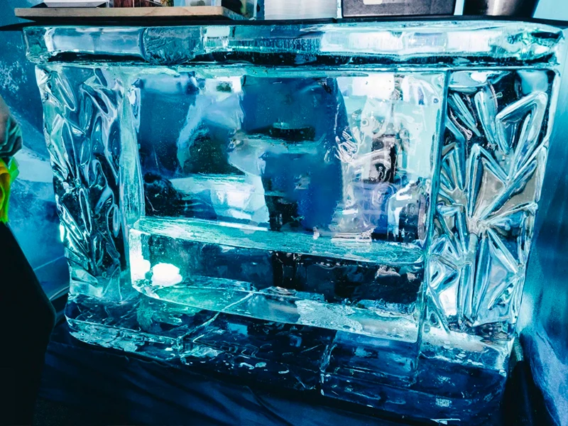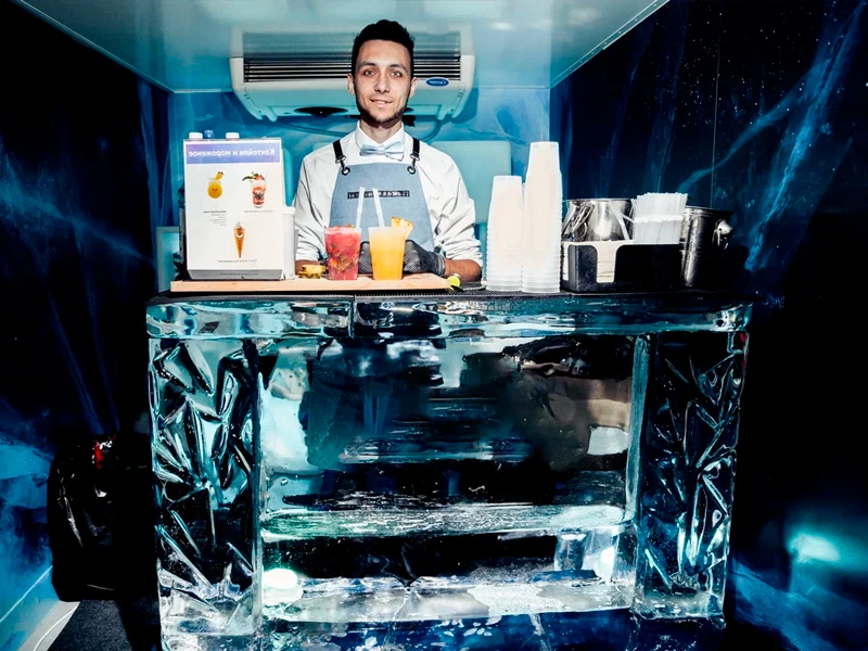 Создайте неповторимую атмосферу на вашем выездном событии с помощью эксклюзивной барной стойки, выполненной из натурального льда. Этот эффектный элемент декора изготавливается по индивидуальному проекту, учитывая ваши пожелания к габаритам и художественному оформлению. Конструкция сохраняет безупречный внешний вид и функциональность на протяжении восьми часов, что позволяет гостям в полной мере насладиться эстетикой ледяного искусства. Мы берем на себя все вопросы по производству и бережной транспортировке объекта непосредственно к месту проведения торжества.