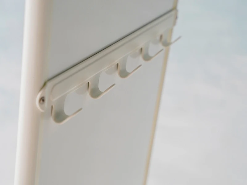 Элегантное напольное зеркало Knapper White станет функциональным дополнением любого интерьера или выставочного пространства. Модель выполнена в прочном металлическом корпусе белого цвета с безопасными закругленными углами, что придает изделию лаконичный и современный вид. Особое удобство обеспечивают встроенные с обратной стороны крючки, позволяющие аккуратно разместить аксессуары или одежду. Благодаря классическому стилю исполнения, зеркало гармонично смотрится на модных показах, в гримерных зонах и на праздничных мероприятиях.