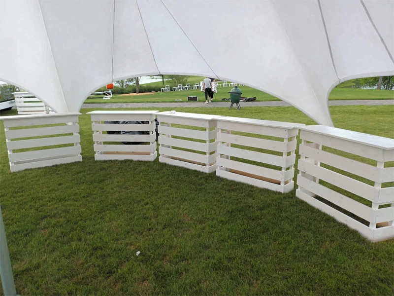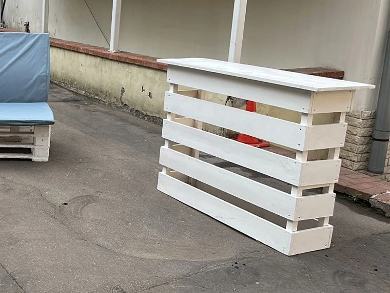Паллетная барная стойка представляет собой стильное и практичное решение для создания функциональной зоны на любом событии. Изготовленная из качественного натурального дерева, эта конструкция привносит элементы эко-дизайна и лофт-эстетики, формируя теплую и гостеприимную атмосферу. Продуманные габариты стойки позволяют удобно разместить барный инвентарь, посуду и напитки, обеспечивая комфортную работу персонала и быстрое обслуживание посетителей. Широкий выбор конфигураций дает возможность подобрать оптимальный вариант под индивидуальные задачи вашего проекта, будь то камерная вечеринка или масштабный фестиваль на открытом воздухе.