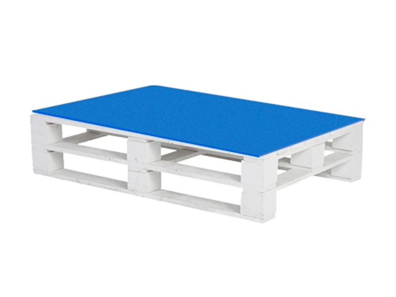 Аренда паллетного стола белого с синей столешницей на мероприятие