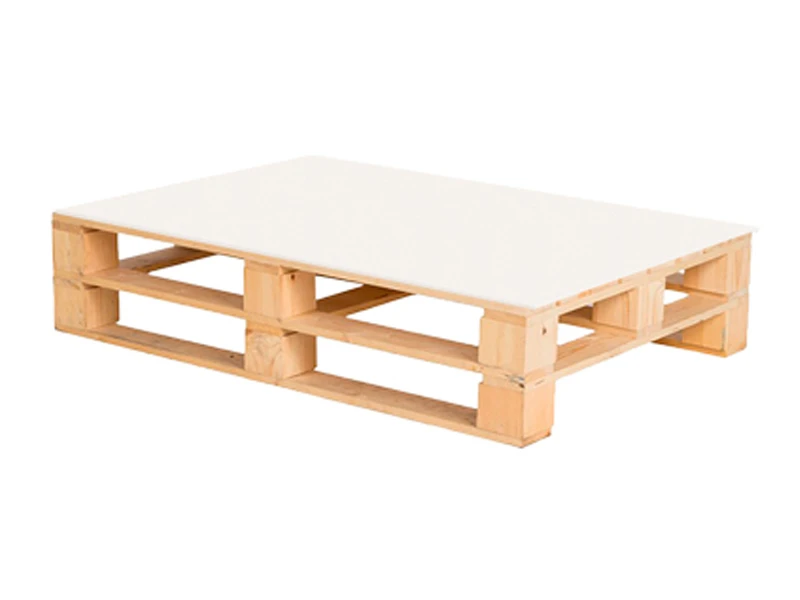 Аренда паллетного деревянного стола с белой столешницей на мероприятие
