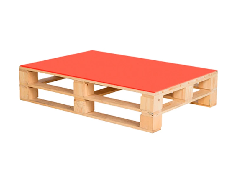 Аренда паллетного стола деревянного с красной столешницей на мероприятие