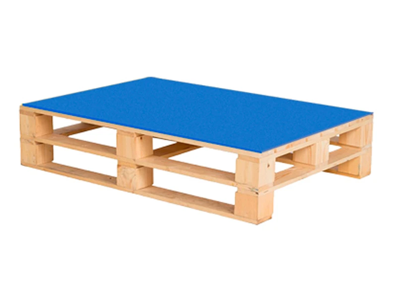 Аренда паллетного стола деревянного с синей столешницей на мероприятие