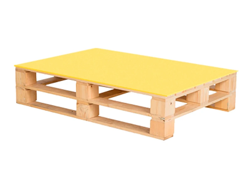 Аренда паллетного стола деревянного с желтой столешницей на мероприятие