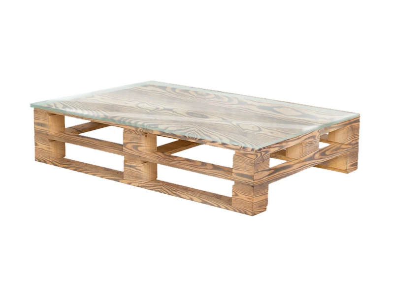 Аренда обожжённого паллетного стола с прозрачной столешницей на мероприятие