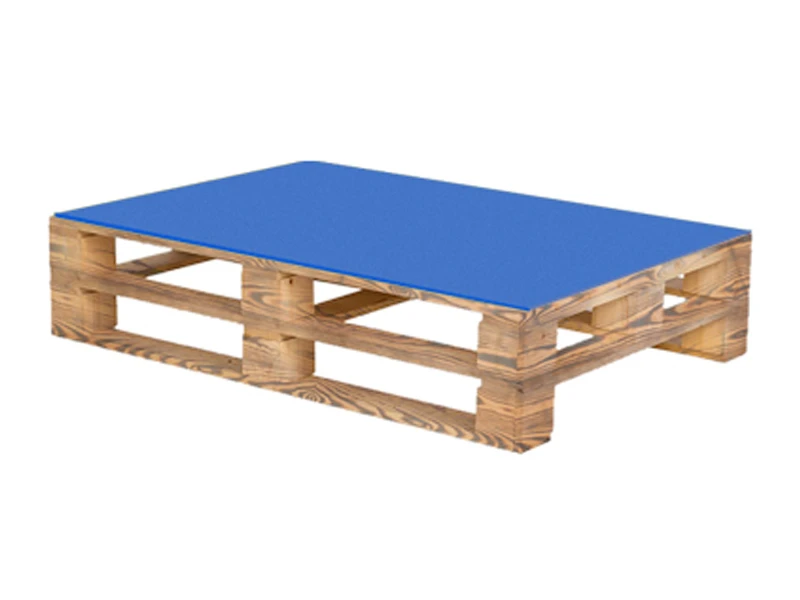 Аренда паллетного стола обожжённого с синей столешницей на мероприятие