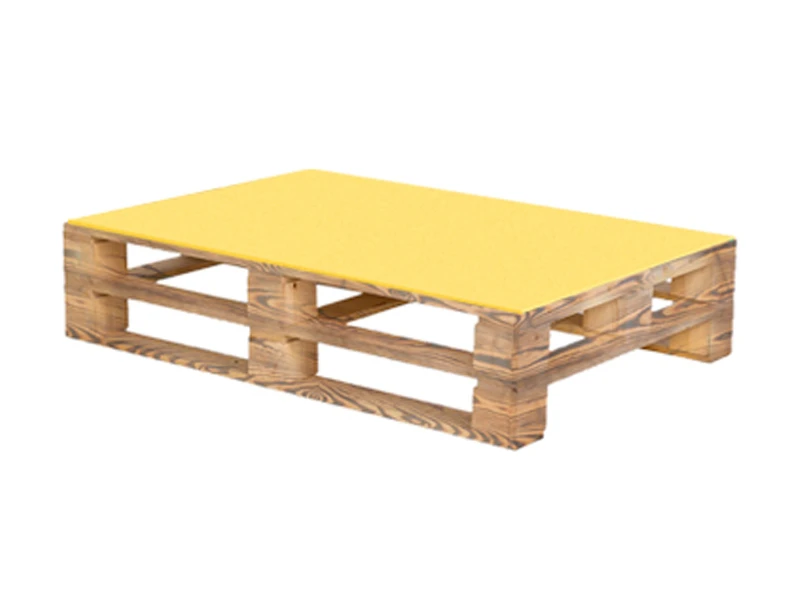 Аренда паллетного стола обожжённого c желтой столешницей на мероприятие