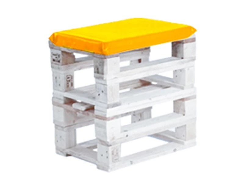 Аренда пуфика из поддонов белого с желтой подушкой на мероприятие