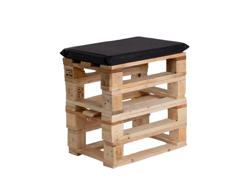 Аренда деревянного пуфика из поддонов с черной подушкой на мероприятие