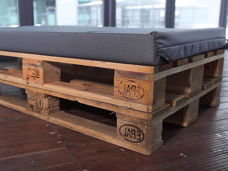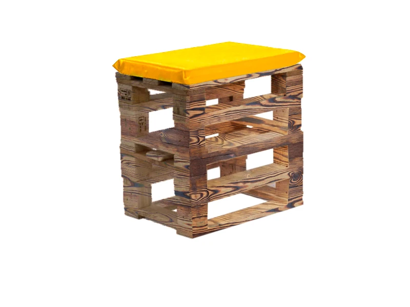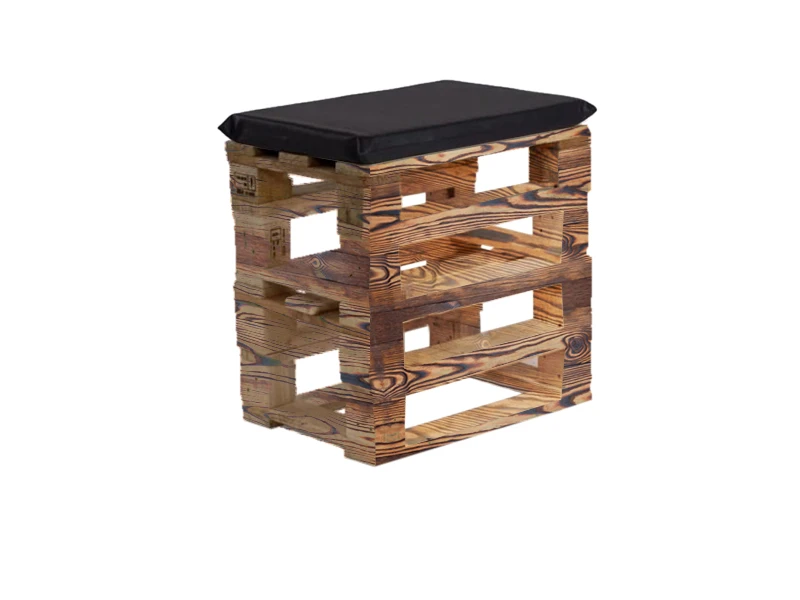 Аренда пуфика из поддонов обожжённого с черной подушкой на мероприятие
