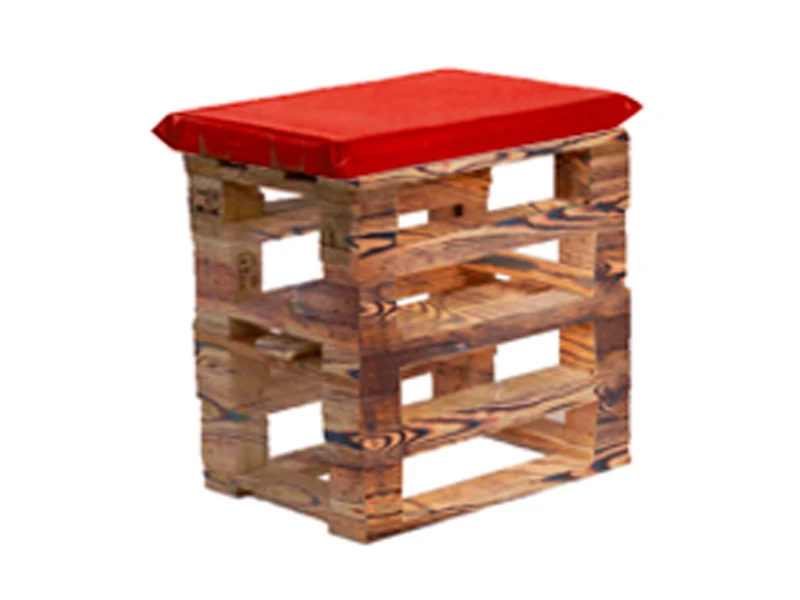 Аренда пуфика из поддонов обожжённого с красной подушкой на мероприятие