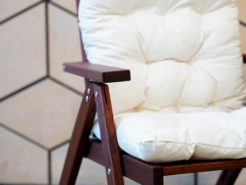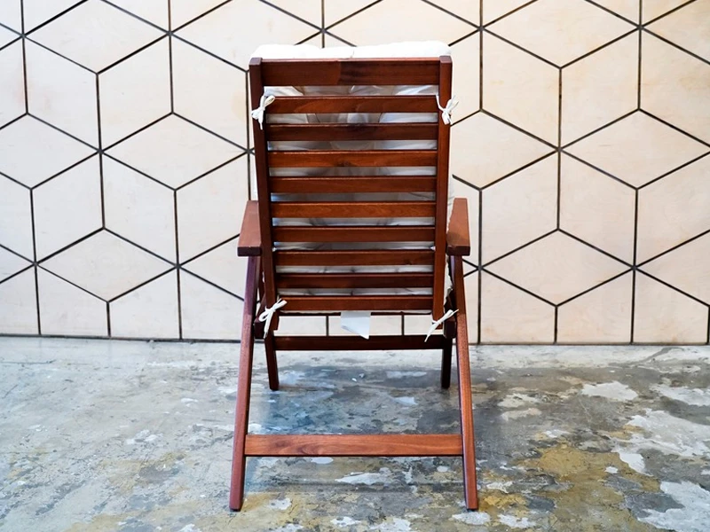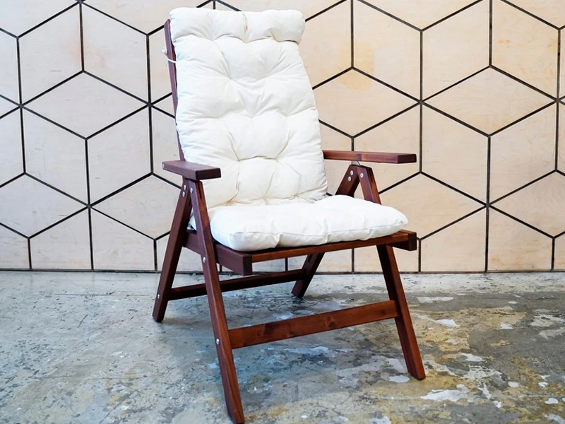 Раскладное кресло Эпларо представляет собой идеальное сочетание эргономичности и природного стиля, подходящее для использования как в интерьере, так и на открытых площадках. Главная особенность модели — возможность фиксации спинки в пяти различных положениях, что позволяет каждому гостю найти оптимальный угол для отдыха. Конструкция выполнена из прочного массива дерева, обработанного защитным составом оттенка натуральной древесины, что гарантирует долговечность и эстетичный вид. В стоимость проката уже включена мягкая белоснежная подушка-чехол, которая делает посадку максимально комфортной и добавляет изделию элегантности.