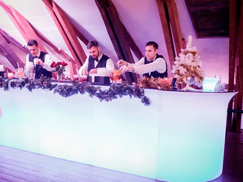 Эффектная и мобильная светодиодная стойка станет ключевым элементом оформления барной зоны на вашем выездном событии. Благодаря встроенной системе динамической подсветки, конструкция неизменно притягивает взгляды посетителей и создает праздничную иллюминацию. Современный дизайн изделия гармонично вписывается в любую концепцию интерьера, от футуристичного лофта до элегантного банкета. Стандартная комплектация включает три функциональные секции, но при необходимости мы можем расширить рабочую площадь, добавив дополнительные модули в зависимости от масштаба вашего торжества.