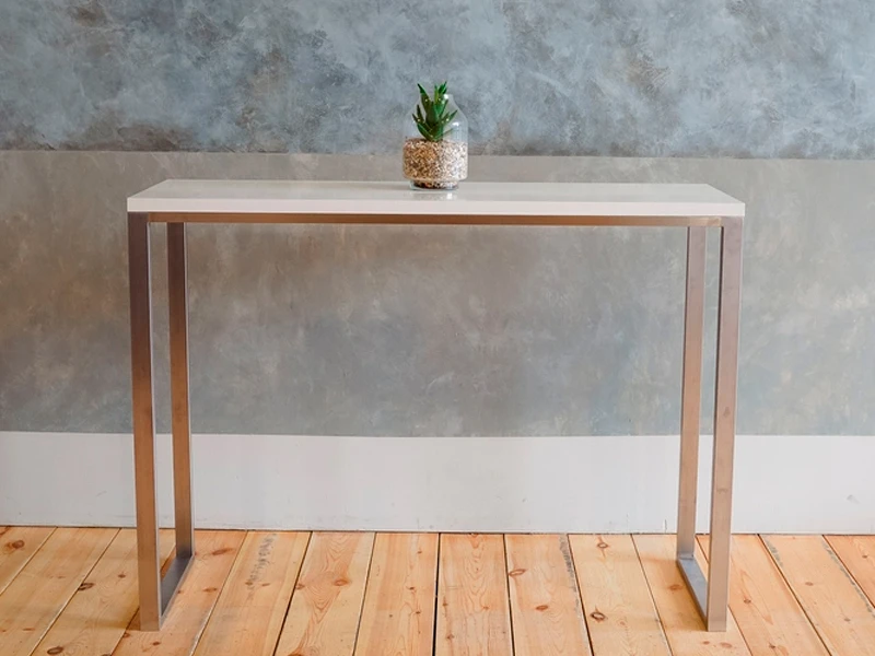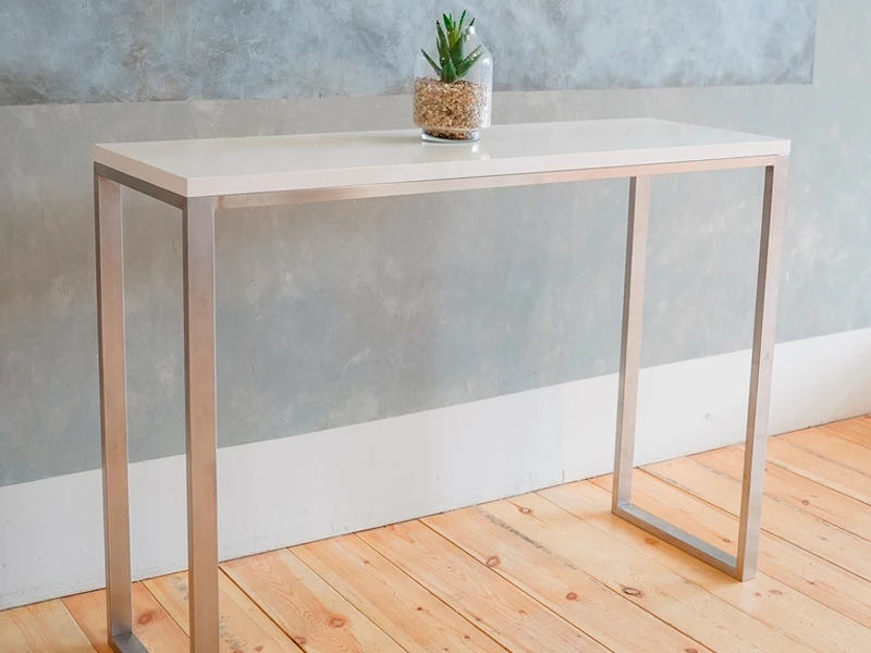 Стол Aesthetic Silver станет идеальным решением для эффектной демонстрации продукции на деловых встречах и масштабных презентациях. Эстетичный внешний вид позволяет модели гармонично дополнить любое интерьерное пространство. Конструкция включает прочную столешницу из окрашенного ЛДСП и устойчивое основание из качественного хромированного сплава. Изделие поставляется полностью в собранном виде, что значительно упрощает подготовку площадки к началу события.