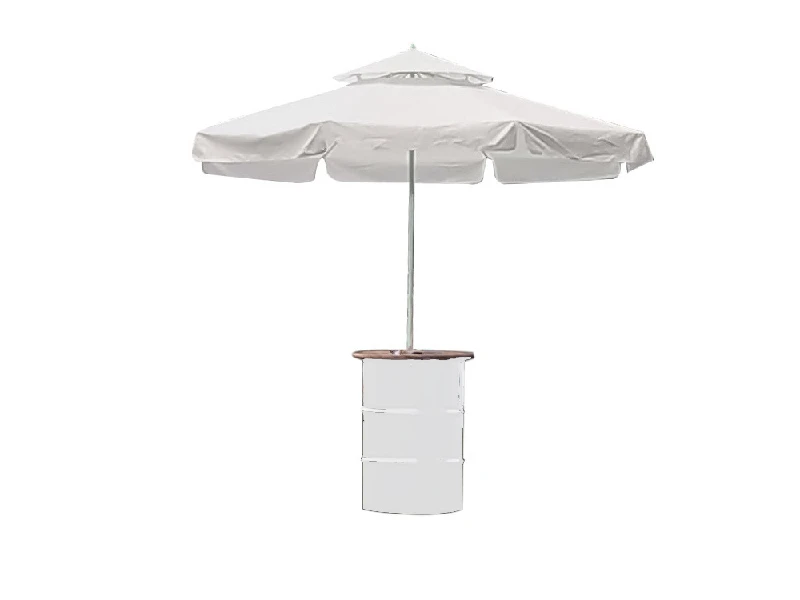 Аренда стола бочки с зонтом белой на мероприятие