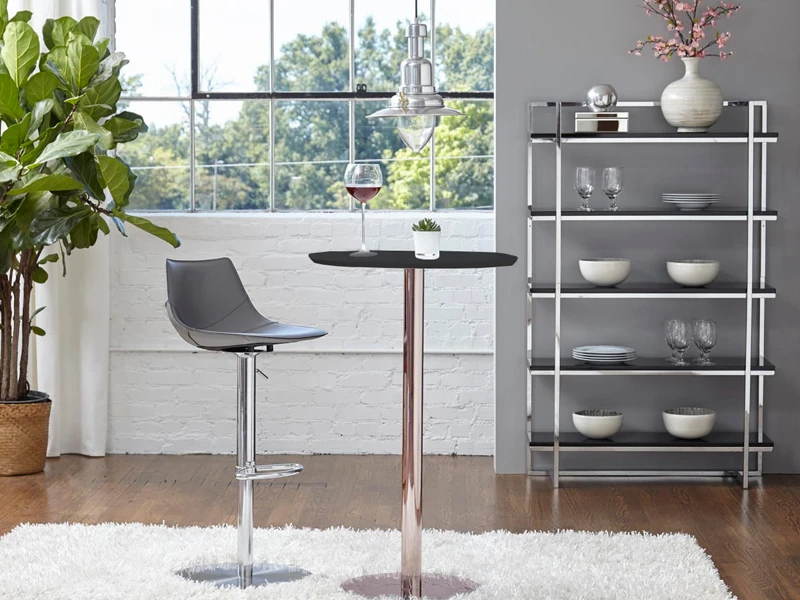 Этот изысканный коктейльный стол станет идеальным дополнением вашего интерьера, привнеся в него нотки современной эстетики. Конструкция выполнена из высококачественного металла с глубоким черным матовым покрытием, что гарантирует долговечность и устойчивость. Компактная столешница диаметром 70 см оптимально подходит для сервировки фуршетных закусок и напитков. Модель разработана специально для статусных приемов, презентаций и выставочных пространств, где ценится лаконичный дизайн и безупречное качество исполнения мебели.
