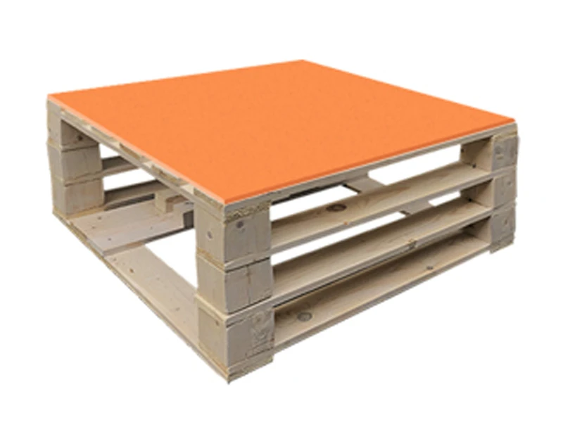 Аренда стола паллетного журнального деревянного с оранжевой столешницей на мероприятие