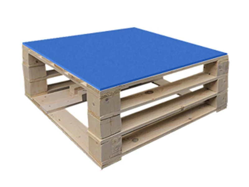 Аренда стола паллетного журнального деревянного с синей столешницей на мероприятие
