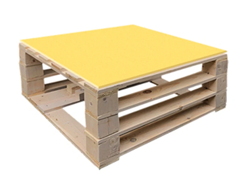 Аренда стола паллетного журнального деревянного с желтой столешницей на мероприятие