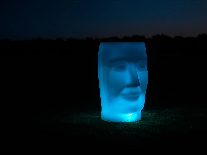 Этот уникальный светящийся арт-объект станет центральным элементом любого современного пространства. Футуристичный дизайн в виде объемной человеческой головы позволяет использовать его не только как комфортное сиденье, но и в качестве оригинального фуршетного столика или эффектной подставки. LED-фигура идеально впишется в атмосферу музыкальных фестивалей, тематических карнавалов и клубных вечеринок. Особенно эффектно пара таких инсталляций смотрится в качестве симметричных светильников, обрамляющих рабочее место диджея, создавая неповторимый визуальный акцент в интерьере.