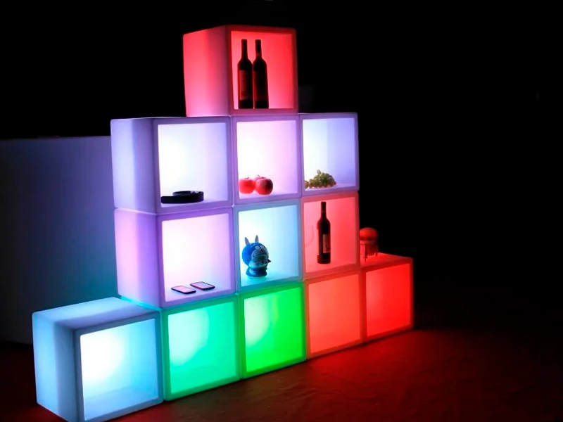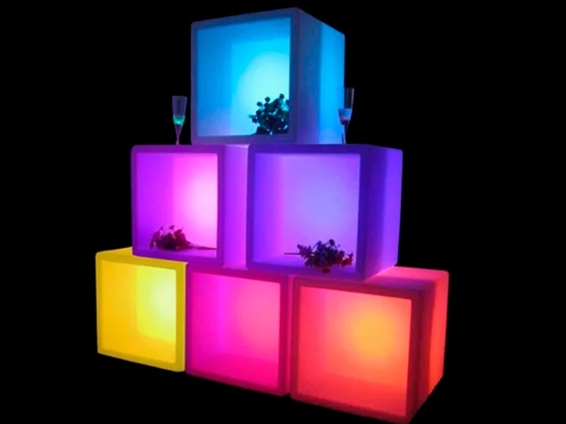 Инновационный светящийся куб с нишей станет центральным элементом оформления вашего торжества или загородного участка. Изготовленный из прочного белого полимера, этот предмет мебели оснащен функциональным углублением, которое идеально подходит для живых цветов, декоративных композиций или фуршетных закусок. Встроенная светодиодная подсветка позволяет создавать магическую атмосферу в сумерках, превращая обычное пространство в футуристичную локацию. Это практичное и эффектное решение для тех, кто хочет удивить гостей нестандартным подходом к освещению и дизайну интерьера.